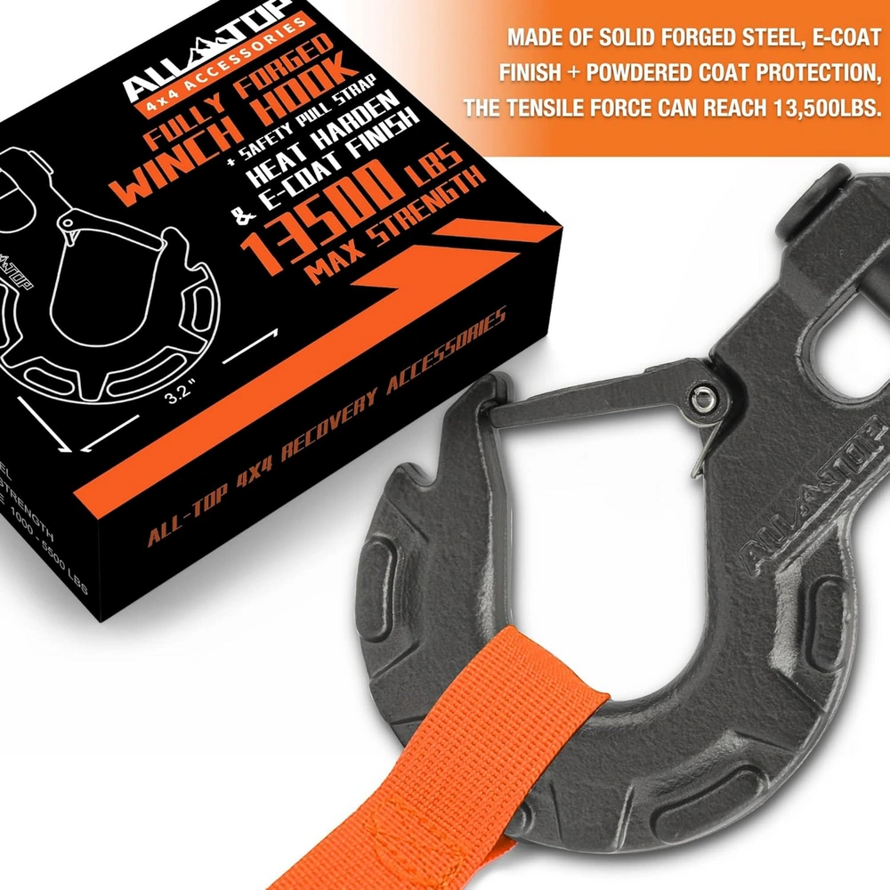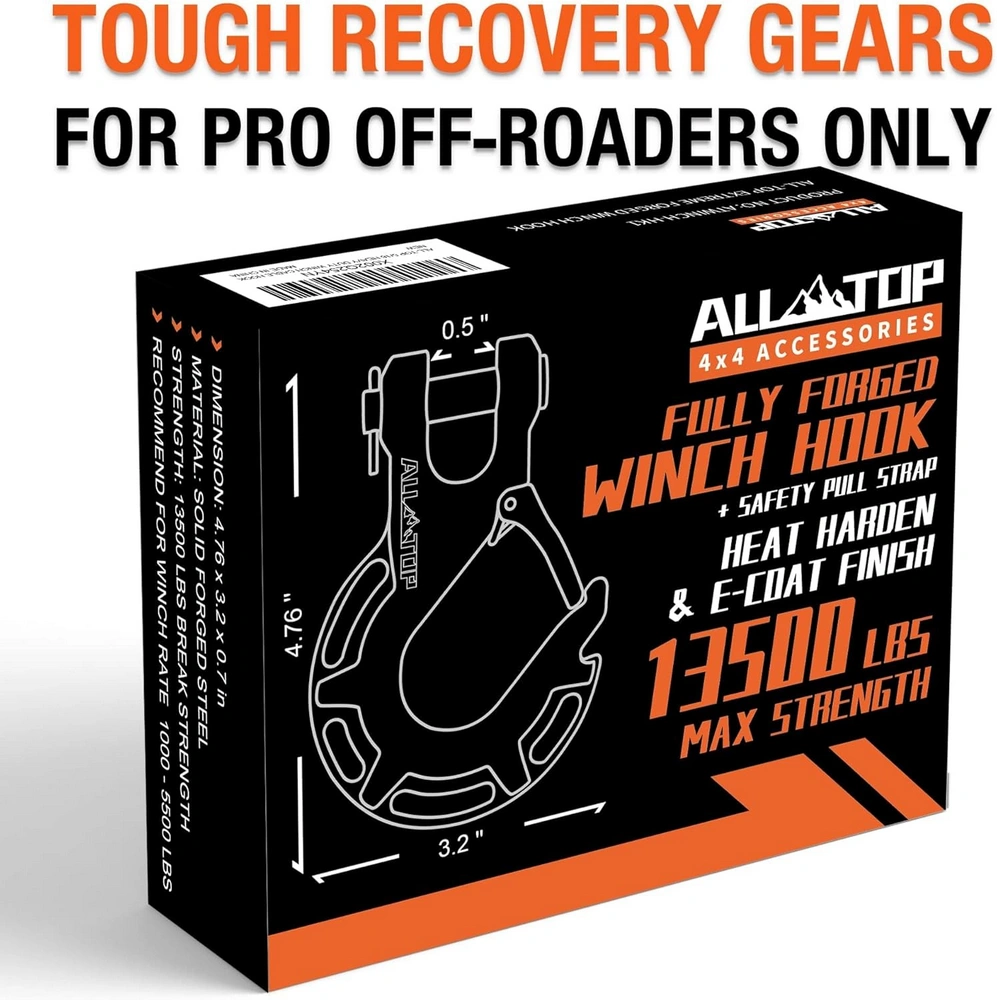 قلاب وینچ فولادی فورج ALL-TOP Extreme ساختهشده از فولاد فوقالعاده مقاوم با فرایند اختصاصی ۱۲ مرحلهای، قدرت شکستن ۱۳,۵۰۰ پوند (۶ تن) را ارائه میدهد. این قلاب حرفهای علاوه بر استحکام بینظیر، مقاومت بسیار بالایی در برابر ضربه، زنگزدگی و سایش دارد.