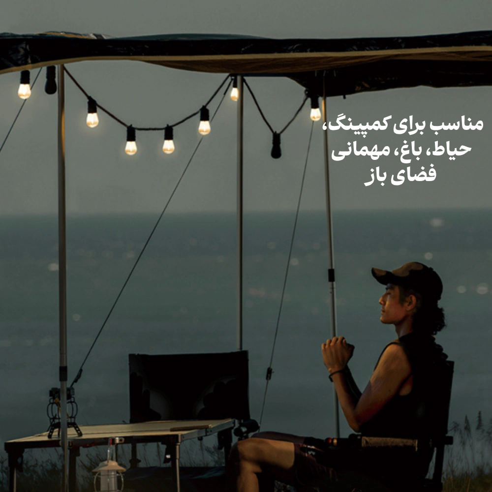 این محصول، ترکیبی از نورپردازی جذاب و موسیقی با کیفیت را در یک ریسه ارائه میدهد و گزینهای عالی برای کمپینگ، مهمانیهای حیاط، تراس یا فضای باز است.