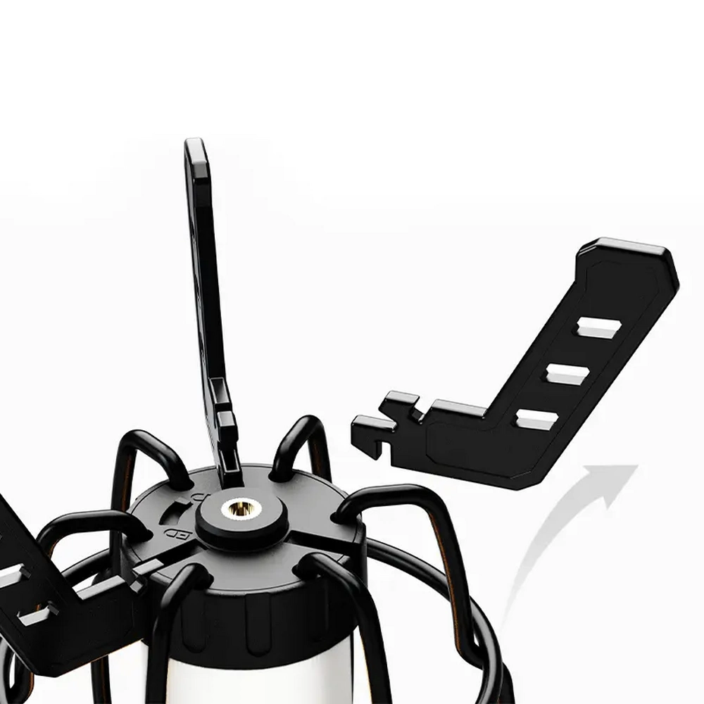 یکی از ویژگیهای کلیدی این فانوس، پایه قابل جدا شدن و تاشو است. هنگام استفاده روی میز، پایه باز میشود و هنگام آویزان کردن یا بستهبندی، جمع میشود تا حجم فانوس کوچک و مناسب حمل باشد. همچنین دو دسته تعبیه شده امکان حمل آسان و چند حالته را فراهم میکند.
